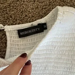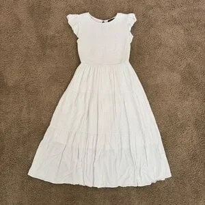 Merokeety Women’s Flutter Short Sleeve Smocked Midi Tiered Dress White size M