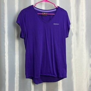 women's purple short-sleeve V-neck tee. Soft, breathable fabric for everyday comfort. Versatile purple color pairs well with casual or active looks. Easy-care style you can wear all season.