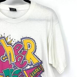 Vintage 90s Cheer Camp Leader Graphic Tee Unisex Size Large White Short Sleeve