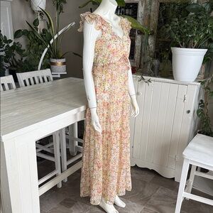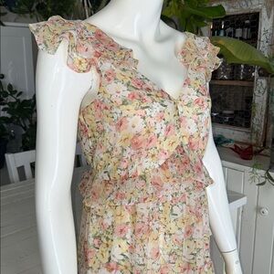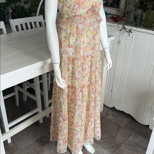 Suzy Shier sleeveless Pastel Floral Ruffle Maxi Dress NWOT XS