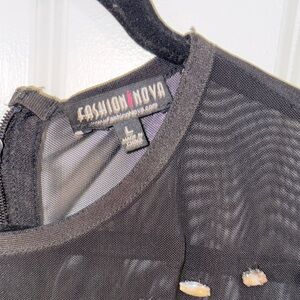 Fashion Nova Black Mesh Long Sleeve Bodycon Dress Size L Clubwear