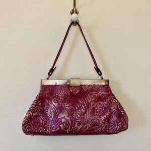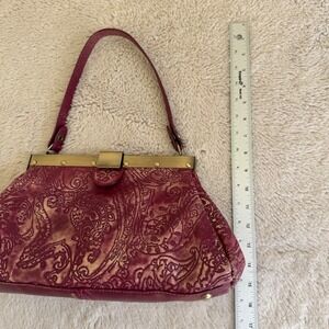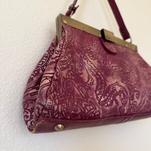Kisslock Shoulder Bag Tooled Leather Paisley Purple Gold Satchel Boho Whimsygoth