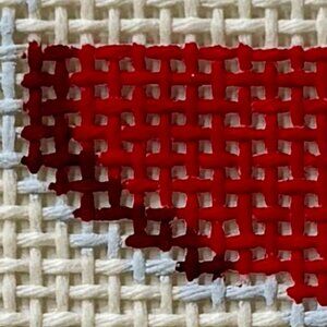 Hand-painted on Zweigart Mono Deluxe, 13 mesh, in Eggshell. It’s a beautiful off-white that’s easier on the eyes than bright white.