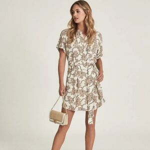 Reiss Ivory Nico Printed Mini Shirt Dress Size 8 Neutral Pockets Short Sz 8