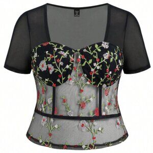 S293 Short Sleeve Black Mesh Sheer Top Size 1XL