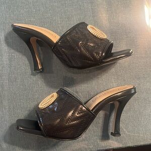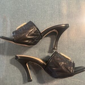 Beautiful Valentino heeled open toed sandals are perfect when you want slightly casual and still want to look effortlessly amazing. With a 3 inch slightly thicker heel, they will absolutely be comfortable for hours. Worn maybe three times there is the tiniest scuff on the front left of the shoe as well as one even smaller on the front right shoe. Please review pictures and ask all questions before ordering.