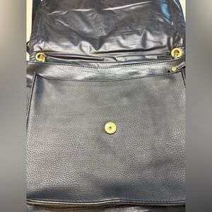 Elegant black leather shoulder bag with gold accents. Perfect for everyday use.