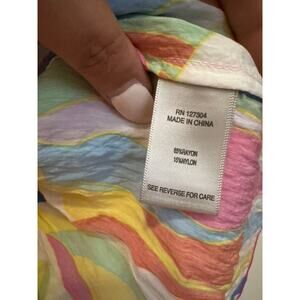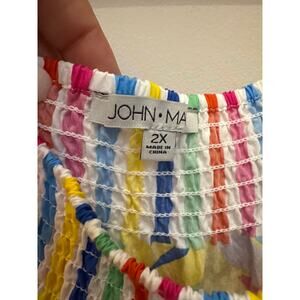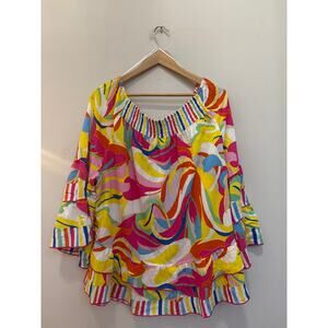 John Mark Abstract Wave Smocked Round Neck 3/4 Bell Sleeve Ruffled Tunic Sz 2X
