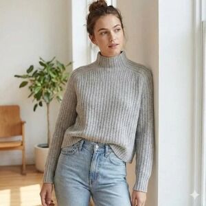 Madewell Pointelle Stitch Mockneck Sweater Womens Small Gray Merino Wool Boxy