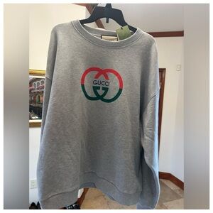Stylish gray sweatshirt featuring the iconic Gucci logo. Perfect for casual wear. absolutely new never worn comes with all tags and authenticity. Originally over 1275