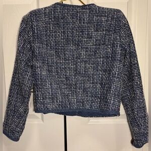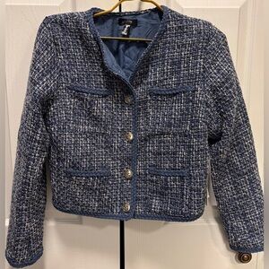 NWT AQUA Bloomingdale’s Tweed Boxy Blazer Blue Silver SMALL Designer Inspired