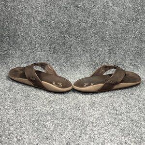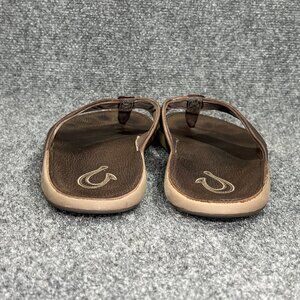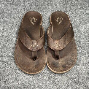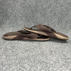 OluKai NUI Flip Flops Men's Size 10 Brown Leather Outdoor Beach Thong Sandals