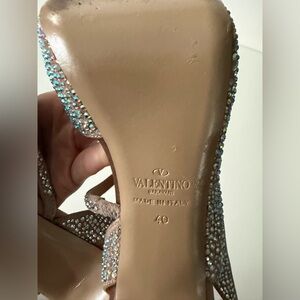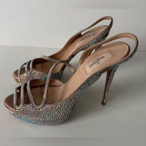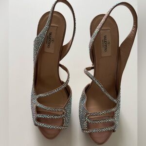 Valentino Beige Crystal Embellished Leather Platform Slingback Sandals Size 40
