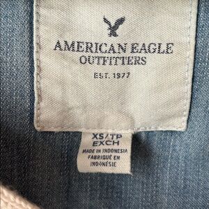 American Eagle lace front denim pullover top. Hooded with pockets. Has some fading, made to look distressed.