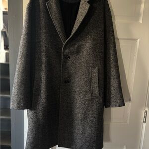 Zara Black and Gray Herringbone Coat