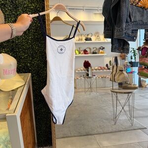 Sporty & Rich White One-Piece Swimsuit with Navy Trim
