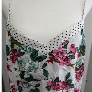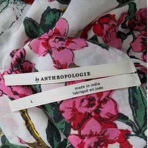 Anthropologie Women Sz L Floral Bird Print Slip Dress White Pink Green Whimsy