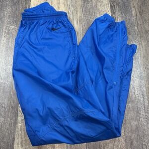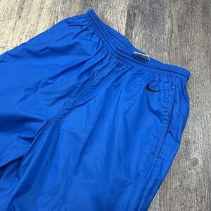 Nike Y2K Track Pants Mens L Blue Nylon Windbreaker Joggers Zip Ankle Leg Swoosh