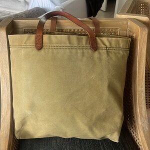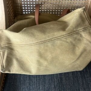 Keywords: Madewell tote, canvas tote bag, transport tote, olive green bag, leather strap tote, minimalist tote, everyday bag, travel tote, work tote. Small mark on one side