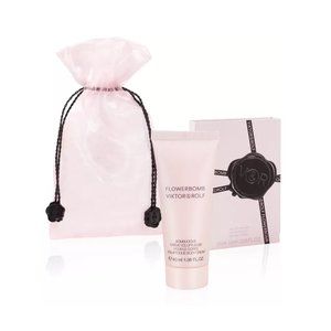 Viktor&Rolf Gift Set-Drawstring Bag,Flowerbomb Sample Spray,Body&Hand Cream Floral-1.2ml,50ml-2pc-NEW