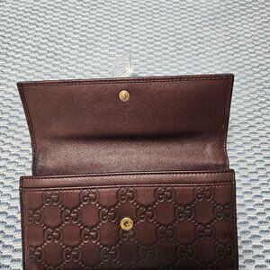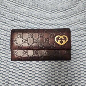 SEO Optimized: Gucci Guccissima Leather Long Wallet - Maroon Brown - Gold Heart GG Logo