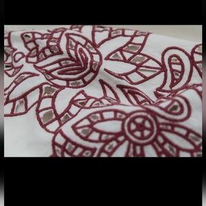 • Color: Cream with burgundy embroidery