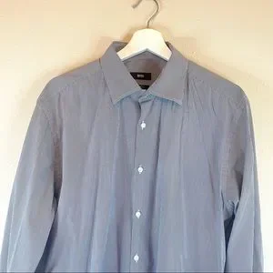 Hugo Boss Men’s Black Label Blue White Striped Shirt Sz 43/17