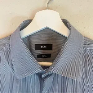 Hugo Boss Men’s Black Label Slim Fit Blue White Striped Shirt/Sz:43/17
