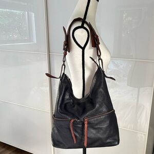 Cynthia Rowley Black Pebbled Leather Hobo Shoulder Bag with Brown Accents EUC