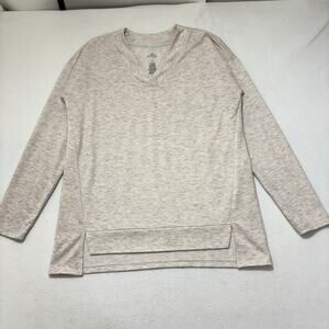 St. John's Bay Active Women's Medium V-Neck Sweatshirt Pullover Beige Stretch