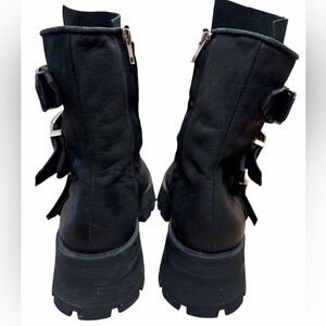 Steve Madden Roland Boots Combat Size 11 Black Side Zipper Triple Buckle Edgy