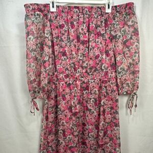 INC International Concepts Pink Floral Off Shoulder High Low Midi Dress XL