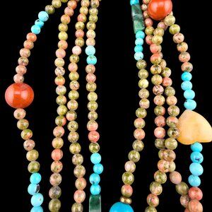 Multi-Strand Beaded Necklace With Heart Accents Easter Spring Boho