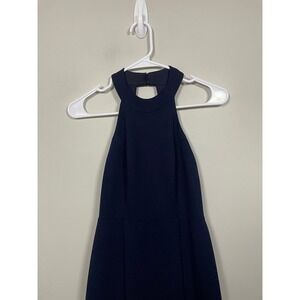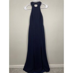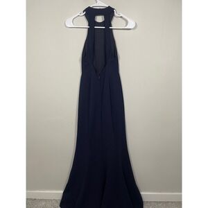 BHLDN Lennox Halter Open Back Side Slit Crepe Gown in Navy Size XXS Formal Prom