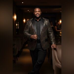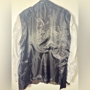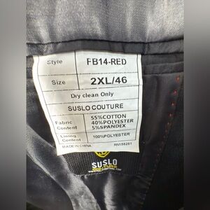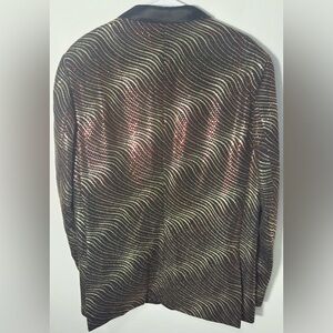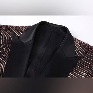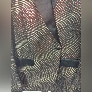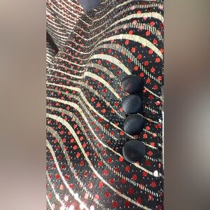 Make a statement with this elegant black and red patterned blazer. Ideal for special events or a stylish night out. The unique design adds a touch of sophistication.
