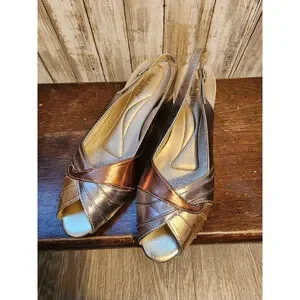 Women's Hush Puppies Gold Bronze Slingback Heels Size 8 VINTAGE