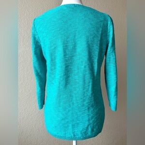 Brighten up your wardrobe with this vibrant turquoise Old Navy lightweight knit sweater. Features a classic crew neckline, 3/4 sleeves, and a comfortable, easy fit. Made with a breathable cotton-acrylic blend that’s soft and perfect for layering.