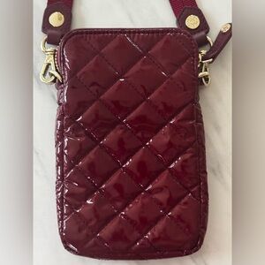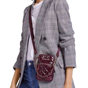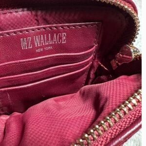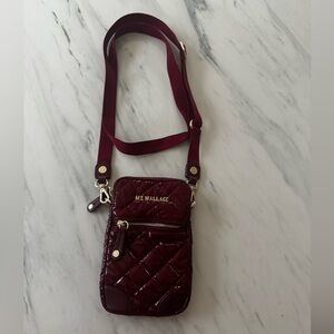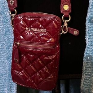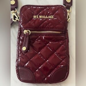 Adorable MZ WALLACE MICRO CROSBY CROSSBODY BAG. Excellent condition. Worn couple times only. Looks amazing on person. Has only one crossbody strap. Doesn’t have small strap. Compact quilted crossbody phone bag by MZ Wallace. Glossy wine-colored exterior with gold-tone hardware. Front zip pocket and leather-trim details. Adjustable strap for hands-free wear. Sleek and polished for everyday use.
