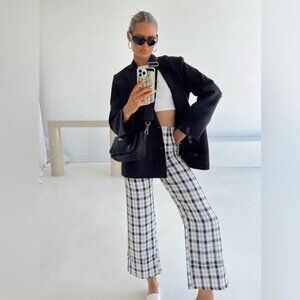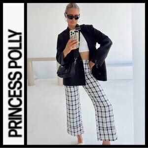 PRINCESS POLLY Black & Cream Plaid Wide Leg Pants EUC