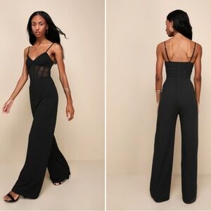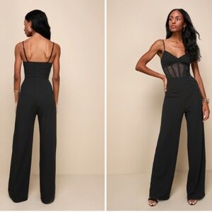 $89 Retail LULU's Sexy Chic Elegant Sheer Bustier Corset Black Wideleg Jumpsuit Pantsuit NWT