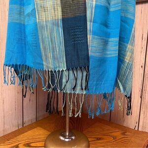 Blue & Yellow Plaid Pashmina Scarf/Wrap | GUC Add a pop of color and warmth with this beautiful blue and yellow plaid pashmina scarf/wrap. Perfect for layering over outfits or keeping cozy during cooler weather. Gently used and in great condition — a versatile and stylish accessory for any season!