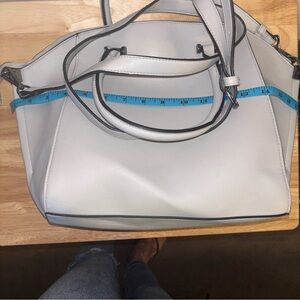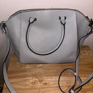 Structured Large Light Gray Satchel Handbag with Shoulder Strap, Crossbody