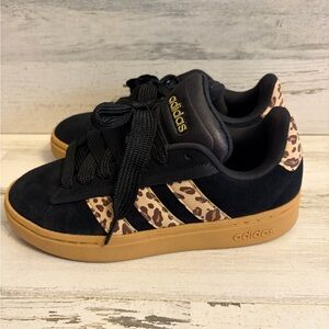 Adidas Grand Court Alpha 00s black with leopard accents. Size 6 comes with box. These are basically new. Only tried on a couple of times but didn’t wear them.