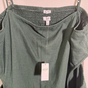 Aerie Women's Mini Sundress Cut Out Linen Blend Smocked Square Neck Size XL NWT