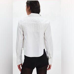 Bring timeless charm to any look with this classic button-down from our We The Free collection, featuring a sleek collared neckline, a lightweight cotton fabrication, and playful ruched accents for added dimension.