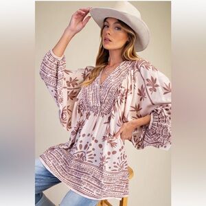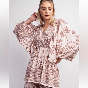 811 ❤️ EASEL RAYON CHALLIS SURPLICE WOVEN BABYDOLL TUNIC