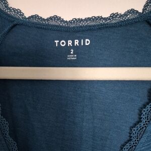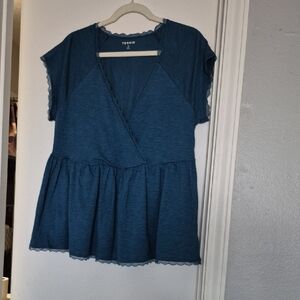 Torrid NWOT Teal Blue Lace-Trim V-Neck Faux Wrap Babydoll Top