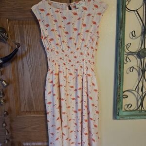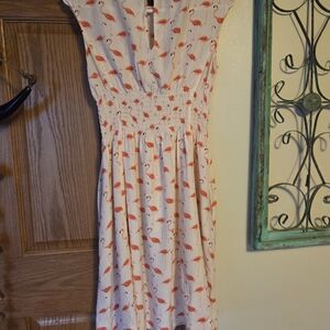 Charming dress with vibrant flamingo design. Ideal for sunny days. from shoulder to length 35" very cute light weight summer dress 🦩🦩🦩