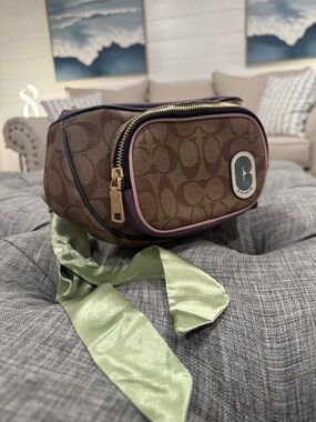 This belt bag is in great used condition! Please see all pictures for minor signs of use. Perfect for travel, a weekend getaway, or any other adventure! Although it may be a small size, it is perfect for all of your travel essentials!