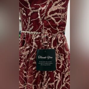 Soiéblu Burgundy Sequin Lace Formal Dress XS Prom Wedding Guest brand new